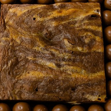 This blockbuster brownie is smooth, bold, and packed with leading-man energy. The Malt Damon features our rich, fudgy chocolate base swirled with creamy malted milk and studded with crunchy malted milk balls throughout. It’s the perfect balance of classic charm and unexpected depth—just like its namesake. One bite and you'll be saying, “How do you like them malt balls?”